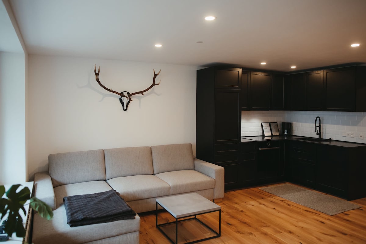 Stanovanje je opremljeno z veliko strasti in pozornosti. Idealen kraj za sprostitev v domačem udobju. Elegantno opremljene sobe za veliko miru in zasebnosti – iz vsake sobe lahko dosežete balkon s pogledom na čudovito naravo. Pohodi in tek na smučeh se začnejo tik ob hiši.