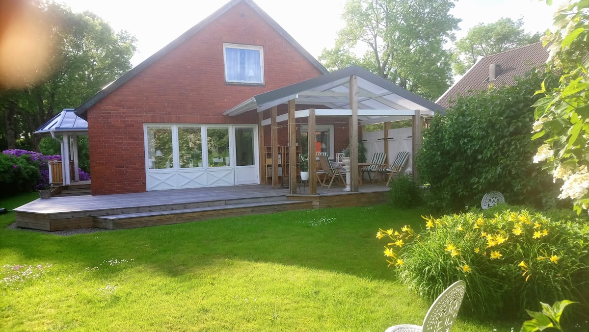 Fantastična hiša, le nekaj metrov od Göta Älv v Trollhättanu, kjer so vključene rjuhe, brisače in čiščenje odhoda. Hiša je oddaljena 3 km od trgovine z živili in 5 kilometrov od središča Trollhättana. Za vogalom je naravni rezervat z »Edsvindsleden«, ki je neverjetno lep pohod! Hiša ima dve spalnici in raztegljiv kavč v eni od dnevnih sob, tri stranišča in veliko teraso s kopalno lestev, če se želite ohladiti. Čas odhoda lahko prilagodite glede na naslednje goste.