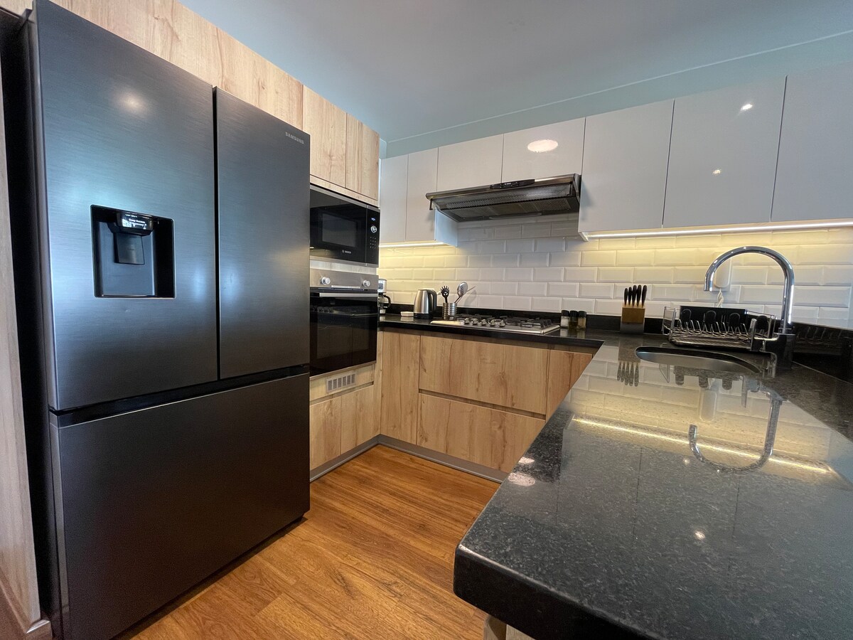 To elegantno predelano stanovanje je bilo zasnovano za vsako podrobnost. Nahaja se v Barrancu, z Mirafloresom in nekaj minutami od morja, se nahaja v stavbi z vsem, kar potrebujete, bazenom v 24. nadstropju s panoramskim razgledom na mesto, coworking in biljard (zahteva zgodnjo rezervacijo). Nudimo BREZPLAČNO: •kava in brezkofeinska kava • Wi-Fi visoke hitrosti •bazen (brez ponedeljka) •telovadnica • kuhinja •samostojni vstop •Zelo udobna postelja in blazine • 55 SmartTv: Prime video