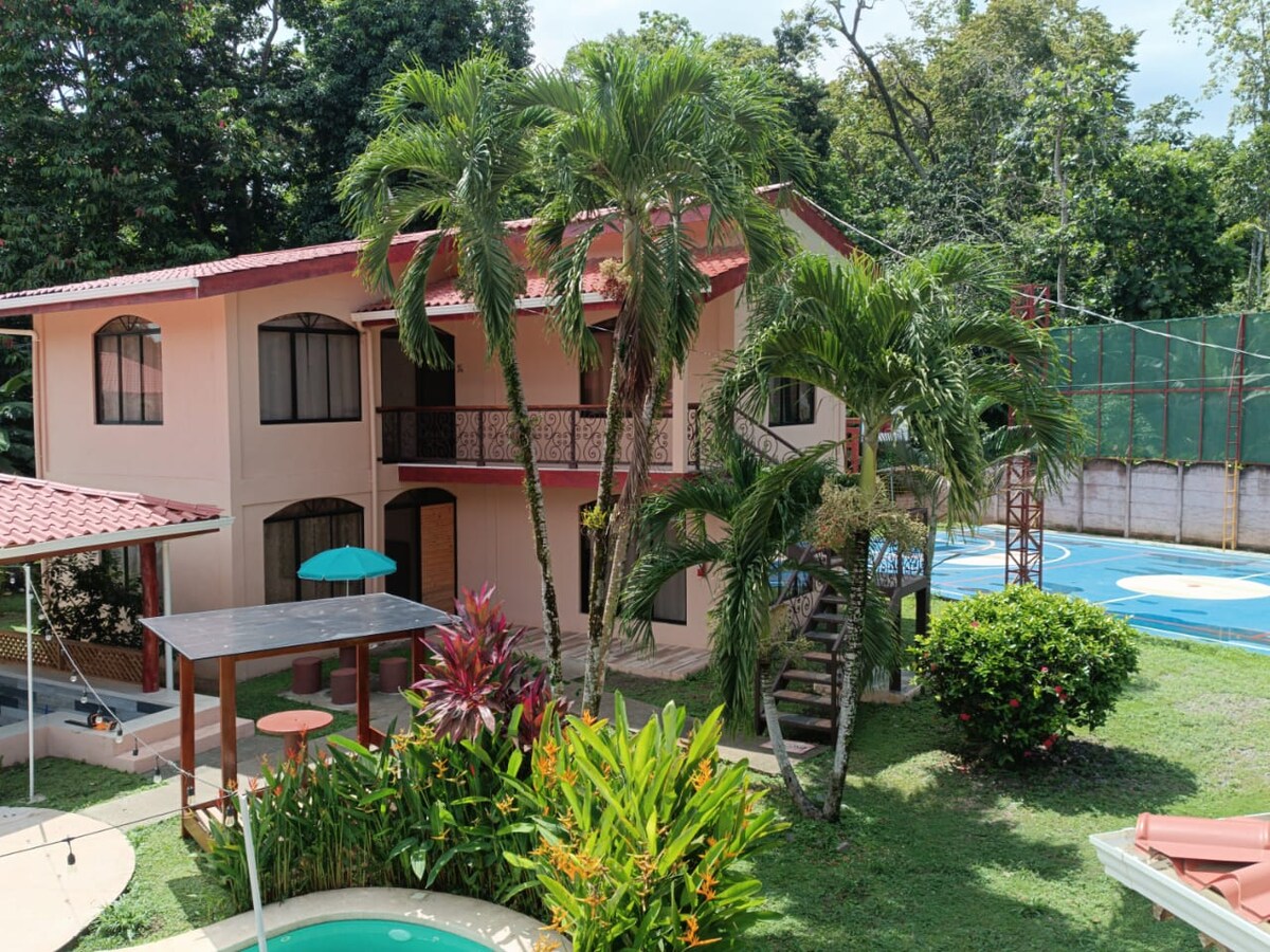 Čaroben kraj z edinstveno lokacijo ob reki Morete. Le 2 km od plaže, vendar obkrožena z džunglo, ki je zaščiteni hodnik za prostoživeče živali s pohodniškimi potmi. Nismo blizu narave, mi smo narava! Naši vrtovi Nature Lodge privabljajo eksotične živali Kostarike! 8 minut do narodnega parka Whales Tail. Nekaj minut stran od več sto restavracij v Uviti! Vila s klimatsko napravo, kuhinjo in čudovitim bazenom! 11 različnih plaž in 8 slapov v 15 minutah!