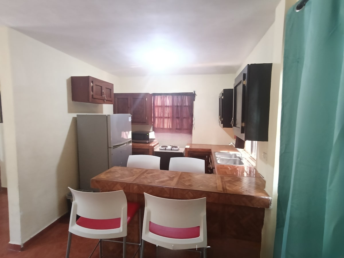 Disfruta una estancia perfecta en esta acogedora casa ubicada a solo 5 minutos del centro. Cuenta con dos recámaras, dos baños y una cocina integral equipada para que prepares tus comidas como en casa. Su amplia sala-comedor ofrece un ambiente cómodo y luminoso, ideal para relajarte o convivir. Un espacio tranquilo, práctico y pensado para que vivas una experiencia agradable desde el primer momento.
