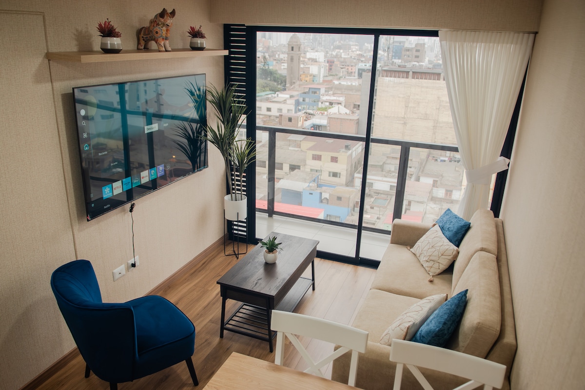 Clean, modern, and functional apartment, strategically located between San Isidro, Miraflores, and Lima’s Historic Down Town, just a few blocks from Arenales Shopping Center and Arequipa Avenue. Features: ✔️ Living room with 65” 4K Smart TV ✔️ 1 bedroom with Queen-size bed ✔️ 1 bedroom with Full-size bed ✔️ Fully equipped kitchen ✔️ Bathroom with Spanish-style shower and hot water ✔️ Fast Wi-Fi 🚘 Free private parking within the property. 👥 Maximum occupancy: 4 guests 🚫 No visitors allowed