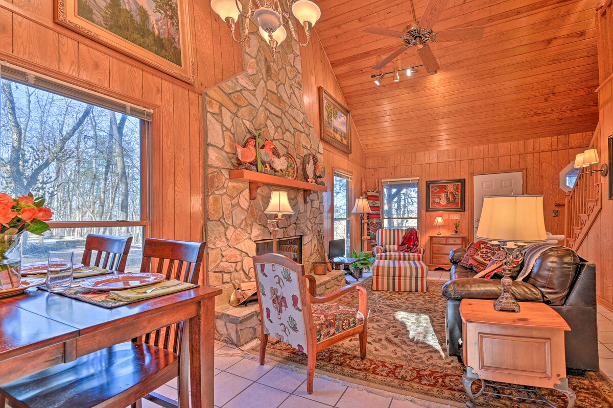 Sprostite se ob mirnih vodah v tej bujni počitniški nastanitvi Fayetteville z 1 spalnico in 1 kopalnico. Ta družinam prijazna dvonadstropna koča, ki se nahaja vzdolž 500 čevljev ob reki, ima popolnoma opremljeno kuhinjo, podstrešje, otroške potrebščine in kamin. Najemite kanu ali kajak za en dan za raziskovanje ali ribolov vzdolž reke Elk. Občutite vetrič z predvajane verande, zapustite svoje najljubše branje na gugalnici in preživite večer skupaj okoli kamina za družinsko igro.