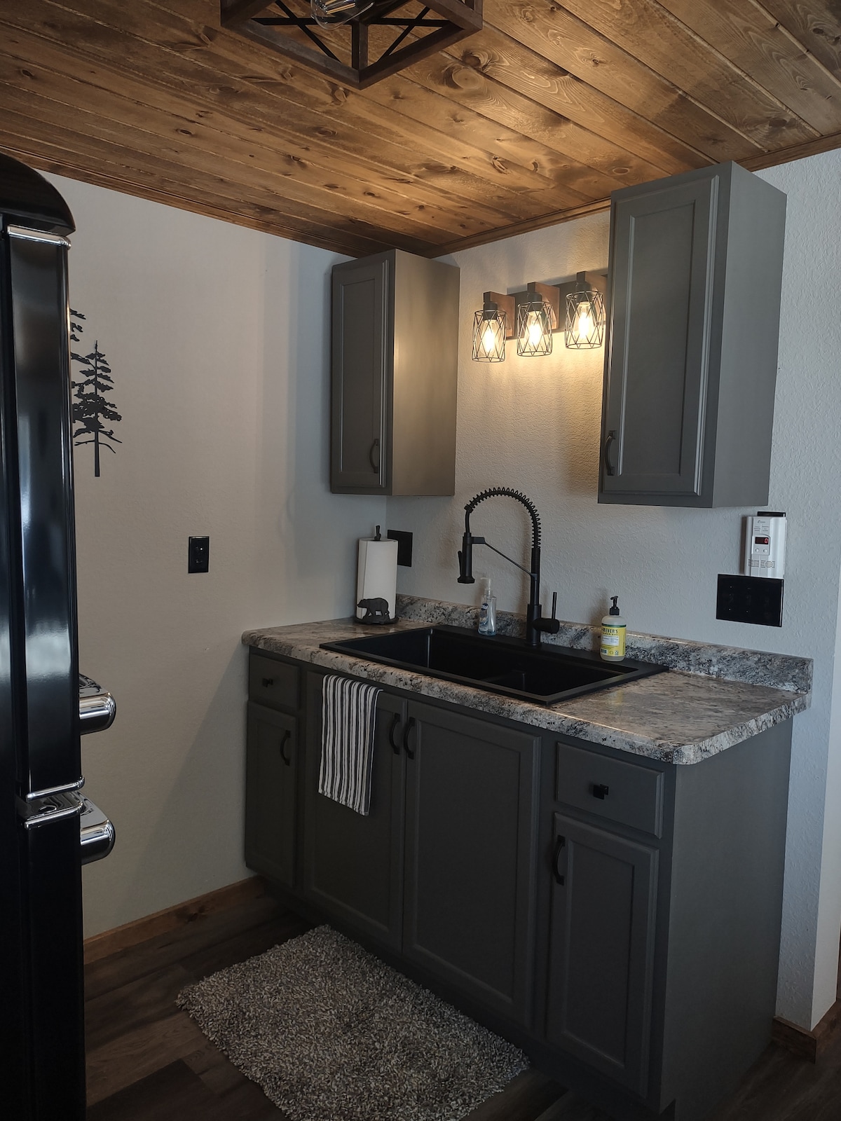 Ta popolnoma prenovljena koča ponuja udobno prenočišče z 1 spalnico s pogradi in zakonsko posteljo (Queen), kopalnico in popolnoma opremljeno kuhinjo. Uživajte v udobni dnevni sobi s televizorjem, ogrevanjem in klimatsko napravo. Koča združuje sodobno opremo z rustikalnim šarmom in se nahaja na čudoviti posesti s površino 40 hektarjev z urejenimi potmi za tihe sprehode. Ponoči lahko opazujete zvezde. Čez cesto so poti za motorne sani z dostopom do UTV-ja. Kot nalašč za miren oddih!