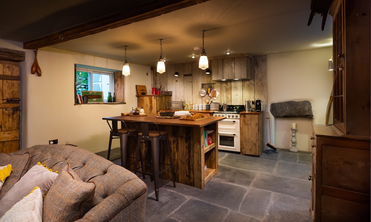 Romantična, elegantna in udobna hiška na deželi za dva v čudovitem narodnem parku Lake District, pol milje od obale jezera Windermere in 20 minut vožnje od križišča 36 M6. Prijazni smo do psov. Naša 250 let stara hiška na deželi ima sodobno rustikalno dekoracijo, ogrevanje u/f, gorilnik za hlode, izjemno hiter internet, pametno televizijo, zvočni sistem Sonos in brezplačen polnilnik za električna vozila podPoint 7kw. Od vhodnih vrat je na voljo veliko čudovitih sprehodov in koles. Prenočišča se začnejo ob ponedeljkih ali petkih.