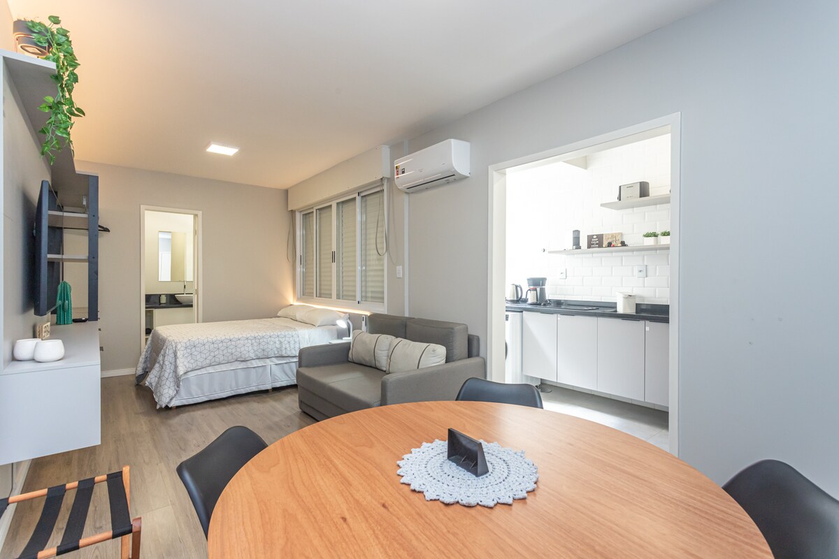 Garsonjera z vrhunskim dekorjem, zasnovana za kratkotrajno ali dolgotrajno bivanje. Idealno za pare, prosti čas ali poslovne potnike. Nahaja se v Porto Alegreju, blizu lekarn, pekarn in tržnic, poleg tega pa ponuja enostaven dostop do glavnih znamenitosti mesta. Nahaja se v eni najbolj cenjenih regij Porto Alegre in ima vso infrastrukturo, ki zagotavlja udobno in prijetno bivanje. Z veseljem vas bom sprejel.