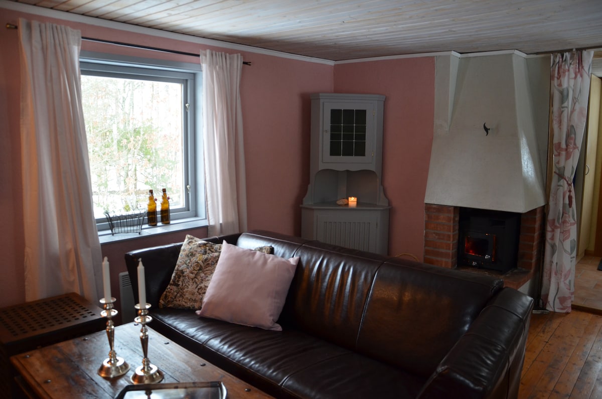 Charming little cabin nestled in a large wild garden in the quaint village of Roxenbaden. The perfect place to unwind and relax in the Swedish Countryside. This is a newly renovated cabin with 2 open plan sleeping lofts and a small outhouse. A Big kitchen with all you need and there’s even a gas pizza oven and a sauna in the garden (extra charge). In less then a minute you’re in the woods and in 5 min by the lake which has a small pebble beach. Welcome!