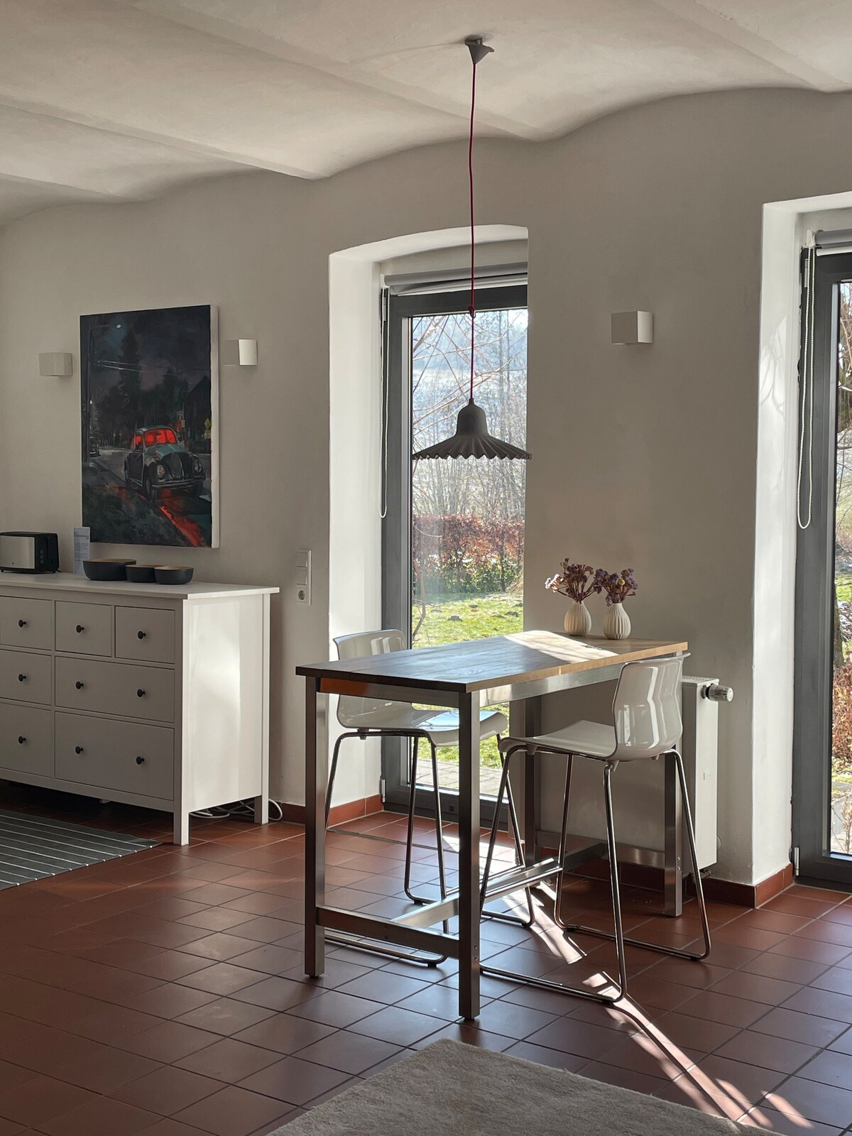 Dobrodošli v Bad Driburgu! Z mano živite na robu mesta neposredno ob mestnem parku z veliko zelenja in majhnim jezerom. Središče mesta, zdraviliški park, železniška postaja,... so v bližini peš. V bližini hiše je tudi postaja mestnega avtobusa za oddaljena mestna območja. Kljub bližini mesta in zmerno prometne mlinske ulice, je pritlično stanovanje (70 m2) mirno, kar je dodatno zagotovljeno z visokokakovostnimi okni z zvokom.