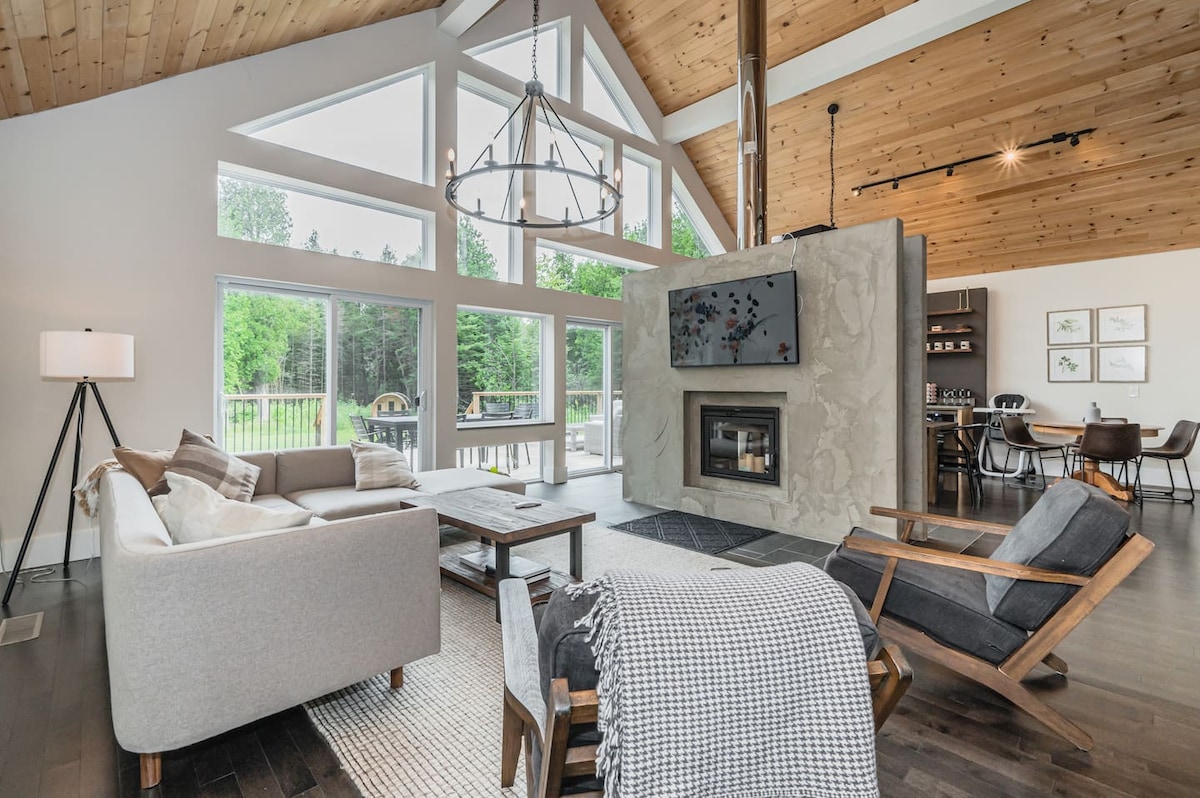 Dobrodošli v Cedarwoodu, wellness oazi. Umaknite se v zatočišče s 3 posteljami in 3 kopalnicami, ki je zasnovano na 2 zasebnih hektarjih, le nekaj minut stran od Tobermoryja. Ta arhitekturni dragulj se ponaša z masažno kadjo, savno in mirnim razgledom, ki ga uokvirjajo veličastne cedre. Uživajte v sodobnem udobju: hitri internet, polnilnik Tesla in okolju prijazna sončna energija. Doživite wellness z našo cedrovo savno, prostranimi terasami in ambientnim dvostranskim lesenim kaminom. Idealno za zahtevne popotnike, ki iščejo razkošje in zasebnost.