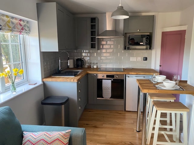 Razkošna samopostrežna skedenj, ki ponuja edinstven in romantičen pobeg, ki se nahaja na slikovitem podeželju Warwickshire. Kraj, kjer se lahko sprostite in sprostite, ne glede na to, ali gre za našo čudovito samostojno kopalno kad, našo posteljo s 4 plakatom ali tako, da položite noge pred gorilnik za drva in uživate v toplem in ambientnem sijaju. Potopite se v naši tradicionalni zunanji masažni kadi, ki se nahaja v vašem zasebnem dvorišču, in opazujte sončni zahod čez polja. To je resnično osupljivo in nepozabno bivanje.