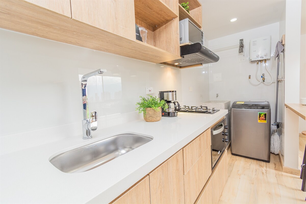 Prepustite se razkošju v tem osupljivem enosobnem stanovanju z zasebnim jacuzzijem, balkonom z osupljivim razgledom in izvrstnim dekorjem. V prestižni stavbi Energy Living uživajte v vrhunski opremi: osupljivemu neskončnemu bazenu na 22. nadstropju, popolnoma opremljeni telovadnici, sproščujoči parni kopeli in celodnevni restavraciji Alquimista. Le kratek sprehod do supermarketa Carulla in živahnega nakupovalnega središča, polnega čudovitih restavracij!