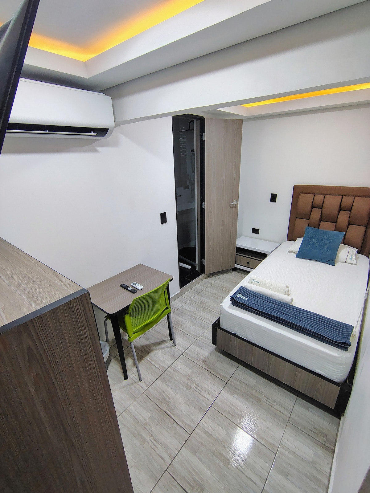 Este alojamiento se encuentra ubicado en un piso inferior (-1), nivel sótano, dentro de un edificio turístico en pleno Parque Lleras, una de las zonas más dinámicas y visitadas de Medellín. La habitación no cuenta con ventanas, ya que está ubicada en el nivel subterráneo del edificio. Es un espacio privado, cómodo y funcional, ideal para huéspedes que buscan una excelente ubicación y una estancia práctica en el corazón de la ciudad.