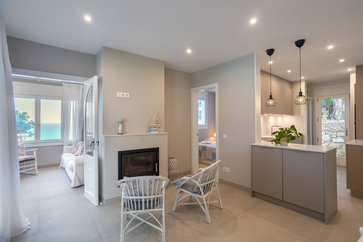 Mas Prats becomes a quiet corner, which invites you to rest and enjoy a unique rural environment located between the Costa Brava and the Gavarres. The one-story house is accessible, spacious and very bright and from every room you can see the fields or the forest. The birds are listening. Two large windows connect the house to the outside, where the porch invites you to enjoy the landscape. The decoration is minimalist and they dominate the clear tones and the wood. An ideal choice for any time of the year.