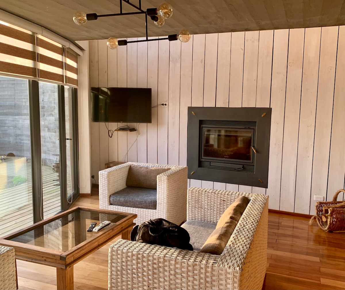Acogedor refugio en doble altura(47mt2), de diseño único. Ideal para escapar del viento costero característico de la zona y disfrutar de templados valles, quebradas y naturaleza virgen. A pasos de la playa, restaurantes y supermercados. Servicio de HOT TUB $38.500 por estadías de 2 noches. Distancias: - A 2min de supermercado. - A 2,5km de La Vega de pupuya. - A 4km de Matanzas. - A 24km de Puertecillo. (40min) - A metros de Arena Pupuya Padel. En días de LLUVIA uso de 4x4 es requerido.