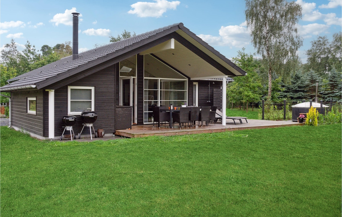 Ta slastno urejena in udobna poletna hiša se nahaja le nekaj minut hoje od vode. Dnevna soba je okrašena s številnimi dobrimi pohištvom, namiznim nogometom in družabnimi igrami. Kuhinja je dobro opremljena z vsemi tehničnimi pripomočki. V spalnicah so zakonske postelje. Ena od dveh kopalnic ima masažno kad in možnost odhoda v savno. Proti vrtu je čudovita velika terasa s sprehajalno potjo okoli celotne hiše. Na terasi je tudi pokrit prostor, kjer je prostor za sedenje, uživanje na vrtu.