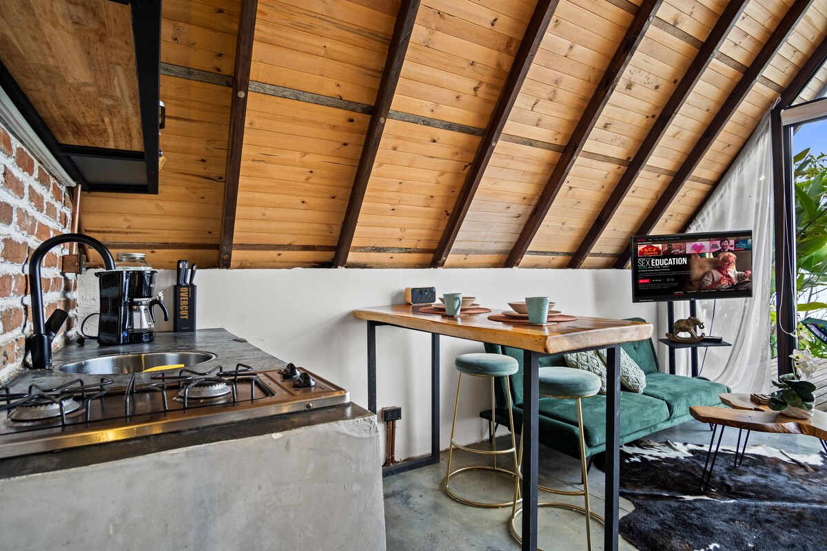Neodvisna hiška na deželi, idealna za 2 osebi, v hladnem podnebju in obdana z naravo. Idealno za sprostitev s kaminom, Wi-Fi-jem, televizijo, visečo mrežo in skrivnim vrtom, ki privablja ptice in metulje. Če boste imeli srečo, lahko z drevesa naberete svež avokado. Miren prostor za mirne goste. Če želite, lahko uživate v prijetnih pogovorih z gostitelji.