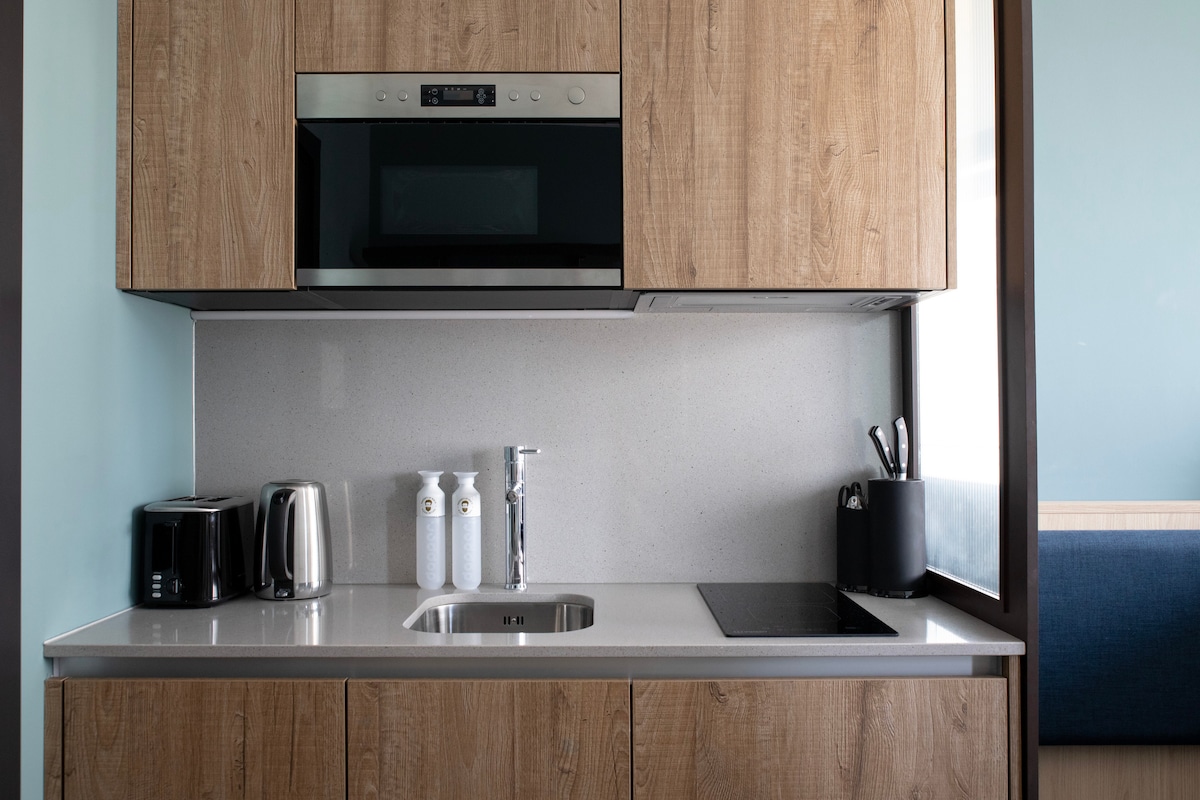 To na novo zgrajeno studio stanovanje ima vse, kar potrebujete za življenje, delo in igro. Pridobite praktične stvari, kot so kuhinja, hiter Wi-Fi, non stop podpora in redno profesionalno čiščenje ter zabavne stvari, kot je pametna televizija. Ostanite v udobju tako dolgo, kot želite – dni, tednov ali mesecev.