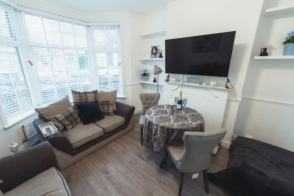 Dobrodošli v stanovanjih Bikki! Vaše sodobno, svetlo dvosobno stanovanje je kot nalašč za družine, pare ali prijatelje. Vključuje popolnoma opremljeno kuhinjo, udoben dnevni prostor, brezplačen Wi-Fi, pametno televizijo in pralni stroj. To stanovanje za 4 osebe s standardno zakonsko posteljo v vsaki spalnici. Nahaja se v mirnem predelu v bližini trgovin, restavracij in javnega prevoza. Gostje imajo radi to stanovanje za sprostitev po napornem dnevu raziskovanja Londona. Samostojni vstop in poln zasebni dostop. Čaka vas popolna počitniška baza.
