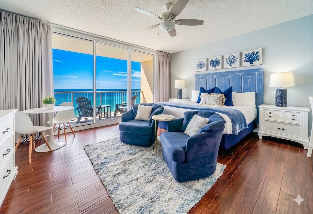 Romantični pobeg na plaži v letovišču Majestic Beach Resort. Zbudite se in uživajte v osupljivem razgledu na zaliv z zasebnega balkona ter se sprostite v udobni zakonski postelji, ki je le nekaj korakov stran od peska. ⭐ Neposreden dostop do plaže. ⭐2 ležalnika + senčnik vključena od (marec do oktober) 9.00–17.00 ⭐Notranji in zunanji bazeni + masažna kad. ⭐Zasebni balkon s pogledom na sončni zahod. ⭐Samostojni vstop in 24-urna varnostna služba. ⭐Vrhunska lokacija. Idealno za pare, ki iščejo sproščujoč oddih brez stresa v Panama City Beachu.