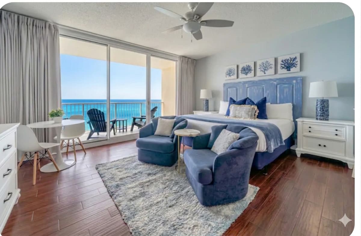 Romantični pobeg na plaži v letovišču Majestic Beach Resort. Zbudite se in uživajte v osupljivem razgledu na zaliv z zasebnega balkona ter se sprostite v udobni zakonski postelji, ki je le nekaj korakov stran od peska. ⭐ Neposreden dostop do plaže. ⭐2 ležalnika + senčnik vključena od (marec do oktober) 9.00–17.00 ⭐Notranji in zunanji bazeni + masažna kad. ⭐Zasebni balkon s pogledom na sončni zahod. ⭐Samostojni vstop in 24-urna varnostna služba. ⭐Vrhunska lokacija. Idealno za pare, ki iščejo sproščujoč oddih brez stresa v Panama City Beachu.