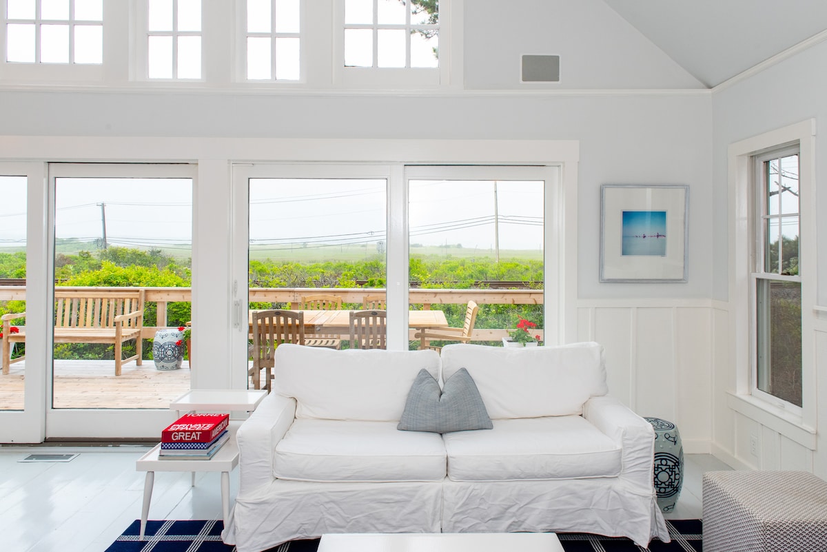 Ta čista, svetla in zračna hiška na deželi ponuja miren oddih z osupljivim razgledom na pristanišče Napeague. Le kratek sprehod stran se nahaja ena najlepših oceanskih plaž Funkcija prenočišča - 3 udobne spalnice in 3 kopalnice z WC-jem ter zunanja prha V notranjosti, Hiša na deželi je dobro opremljena in zasnovana. Medtem ko vlak od Amagansetta do Montauka pelje za hišo, ne ovira mirnega pogleda na zaliv. Opomba: zaradi zdravstvenih težav ne moremo sprejeti živali.