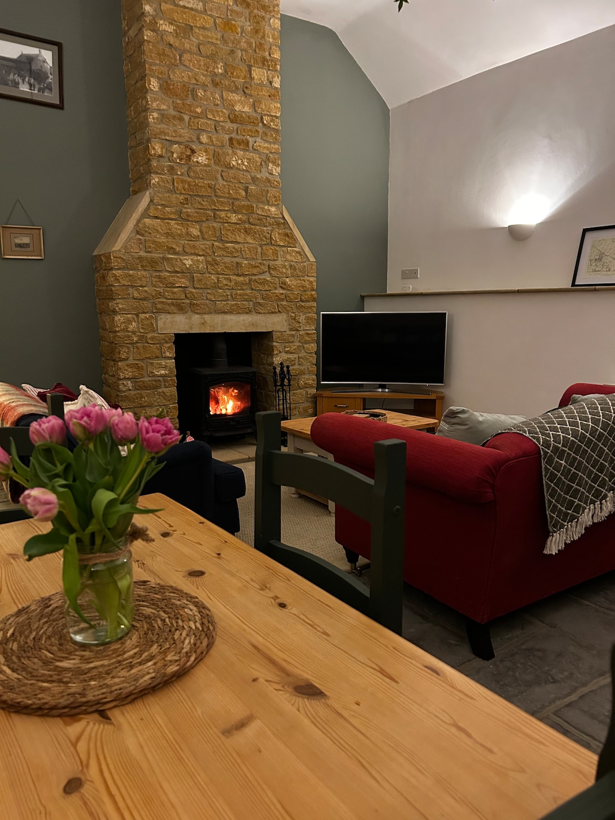 Če pogledate odprto podeželje, je to popoln kraj za sprostitev in uživanje v zasluženem oddihu . Odprt bivalni prostor z gorilnikom na drva, pametno televizijo in vrtnimi vrati, ki vodijo na vrt. Kuhinja: z električnim štedilnikom, indukcijsko kuhalno ploščo, mikrovalovno pečico, hladilnikom/zamrzovalnikom in pomivalnim strojem . Spalnica: s super veliko zakonsko posteljo in kopalnico s kadjo na kolesih, nastavkom za prho, prho in ogrevano držalo za brisače. Ločeno stranišče. Vse v pritličju. Vključeni začetni hlodi za gorilnik na les.