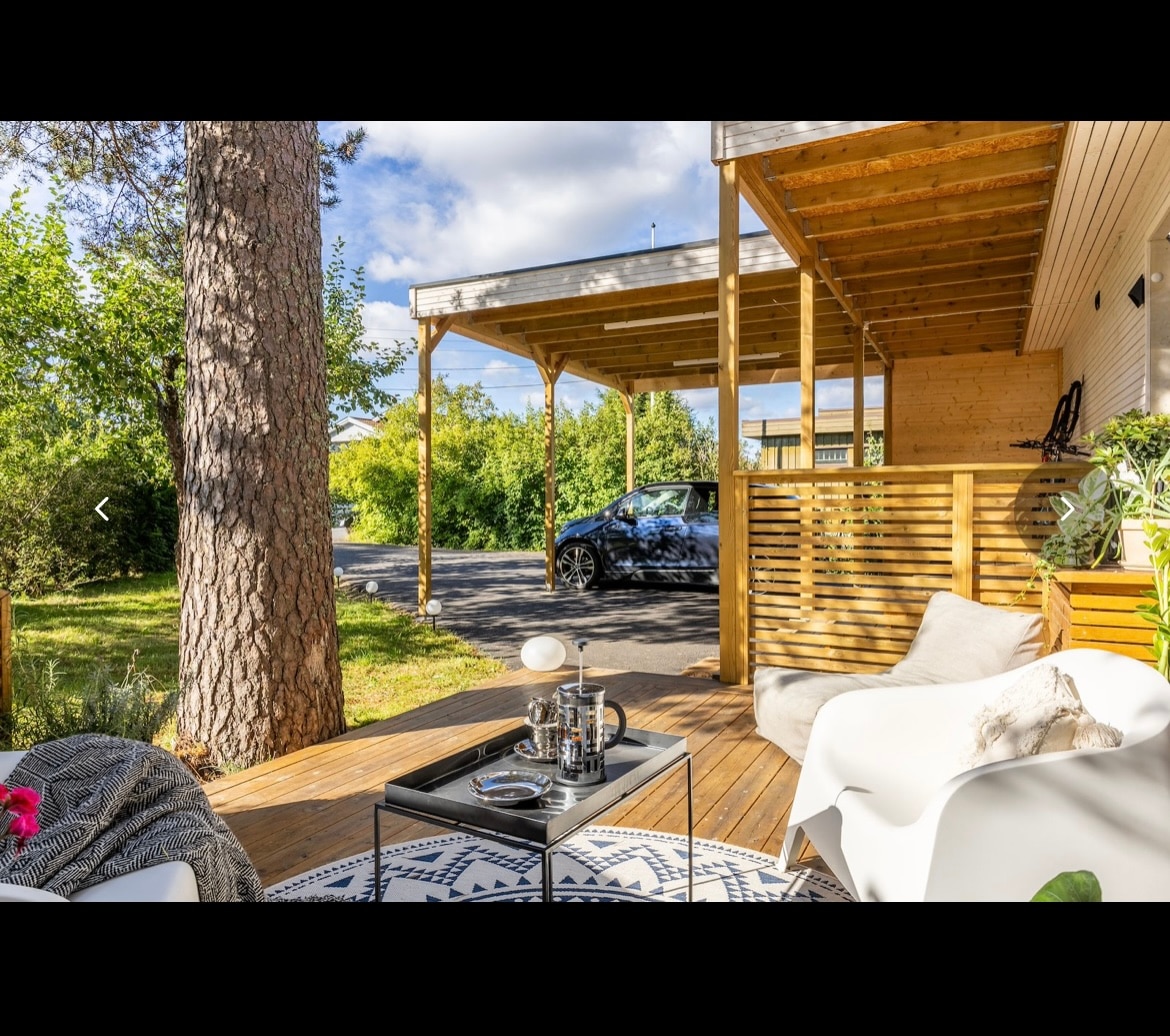 A townhouse apartment located right by the entrance to Østmarka forest. Enjoy endless hiking opportunities (we’re happy to share tips!). The metro is just a seven minute walk away, taking you to Oslo city center in 18-20 minutes. The property has gardens on both sides, with a gated and fenced yard. If you’re bringing a dog, they’ll enjoy the custom-built crate under the stairs.