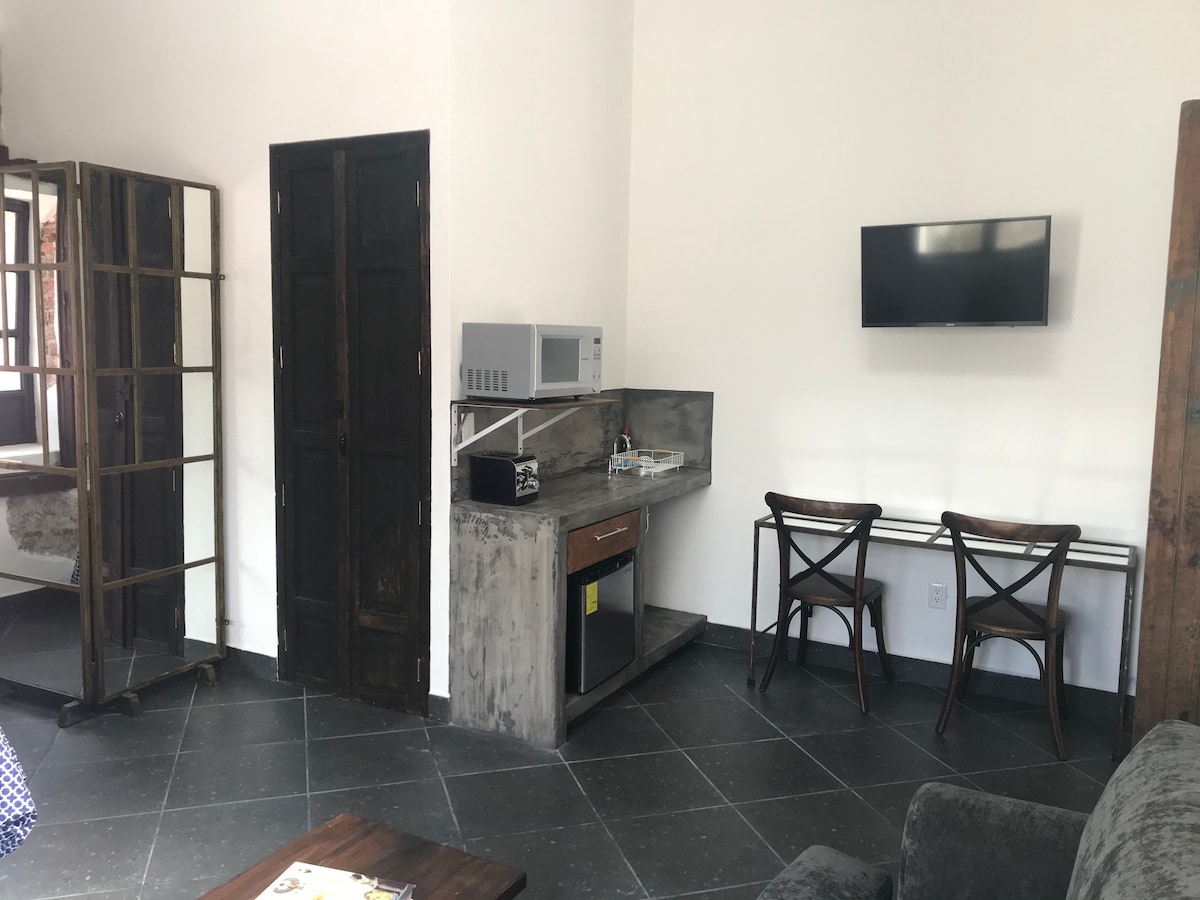 Welcome to Casa Martina, a stylish loft apartment within a renovated & architecturally renowned Casona in Puebla’s unique Historic Center. This 3-level space offers everything you need for a memorable stay: A king bed with 60’ TV + streaming, automatic blinds, AC, desk, fully equipped kitchen with Nespresso, laundry room, and a full bathroom with double sinks. Enjoy a private rooftop terrace with 360° views of the city and volcanoes. Gated building with free parking for a sedan/SUV car included.