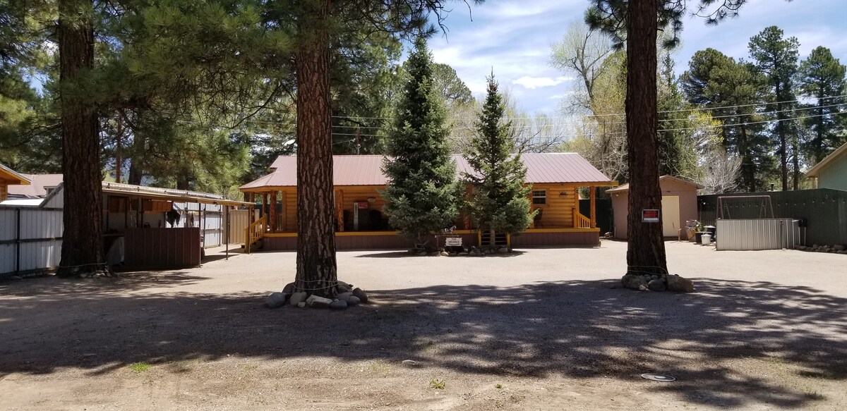 Nizek strošek čiščenja! Masažna kad s profesionalno tedensko storitvijo. Psi so dobrodošli brez doplačil za hišne ljubljenčke. Najbolj romantičen oddih v Koloradu. Kamp Kimberly je obdan z narodnim gozdom. Razgledi iz tega sodobnega in zasebnega prenočišča na 35 hektarjih so osupljivi. ZVEZDE! Spokojnost kampa Kimberly bo ponastavila vašo energijo. Luksuzna oprema, vključno s popolnoma novo zakonsko posteljo (King), hitrim omrežjem Starlink Wi-Fi, super kul klimatsko napravo in velikimi televizorji 4K s Sonosom. Mesto je dovolj blizu in dovolj daleč. @CampKimberlyPagosa VRP: 036525