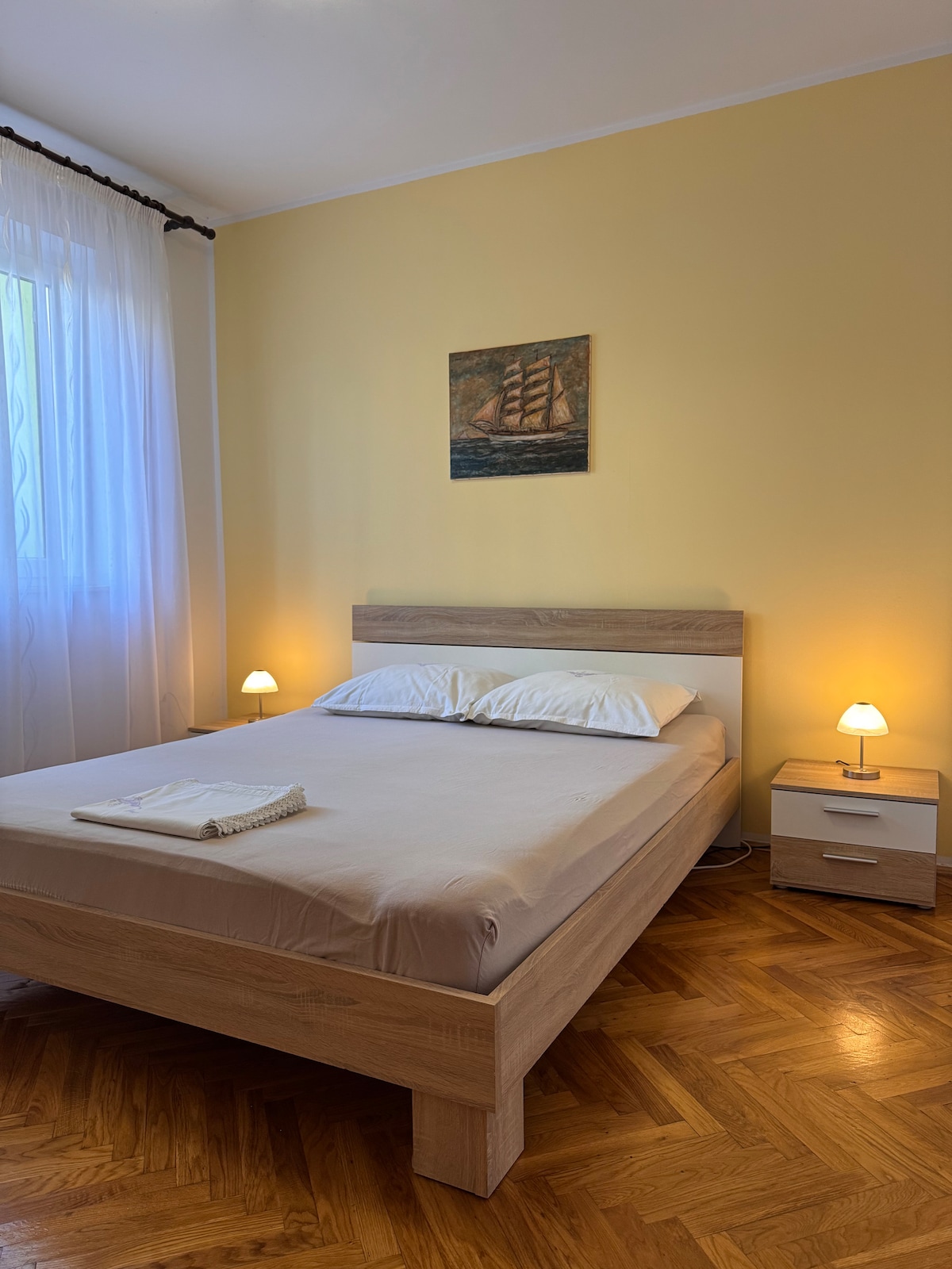 Dragi gostje, apartma Ana se nahaja med središčem mesta (mestni trg je oddaljen 5 min peš) in plažo Zagazine (5 min peš) v zelo mirni enosmerni ulici. Če imate radi mir in tišino, hkrati pa želite biti v bližini barov, supermarketov, centra mesta in plaž, potem je ta lokacija kot nalašč za vas :) Pred stavbo boste imeli tudi svoje zasebno parkirišče, tako vam ne bo treba biti pod stresom zaradi iskanja prostega mesta.