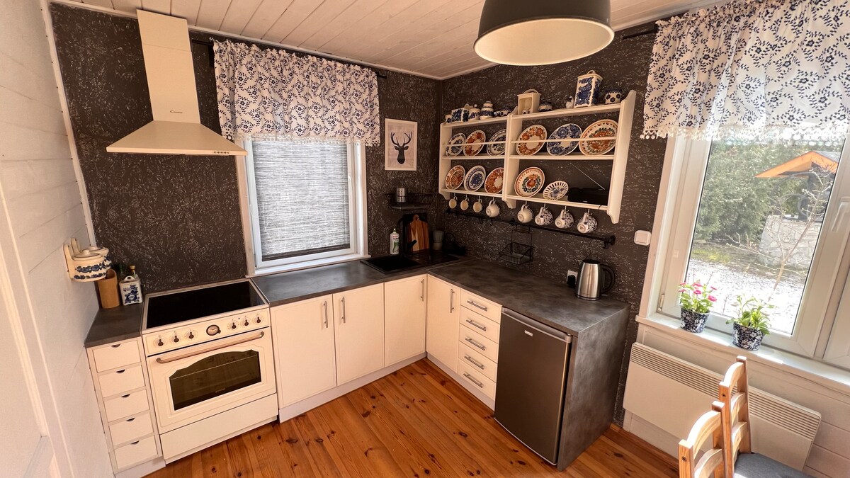Druga koliba je že zdavnaj, opeka kamnitih nasadov. Imenovali smo ga AleLu Luxury, saj se je ob prenovi izkazalo, da so bili samo plemeniti materiali primerni za stari kamen. Naredili smo mize iz hrastovega lesa. Iz ugriznjenega časa zobnih desk za rušenje je prišlo do čudovitih kuhinjskih vrat. Umivalnik je bil narejen iz rečnega kamna in umivalnika iz granita. Glazura na torti je infrardeča savna iz macesna.
