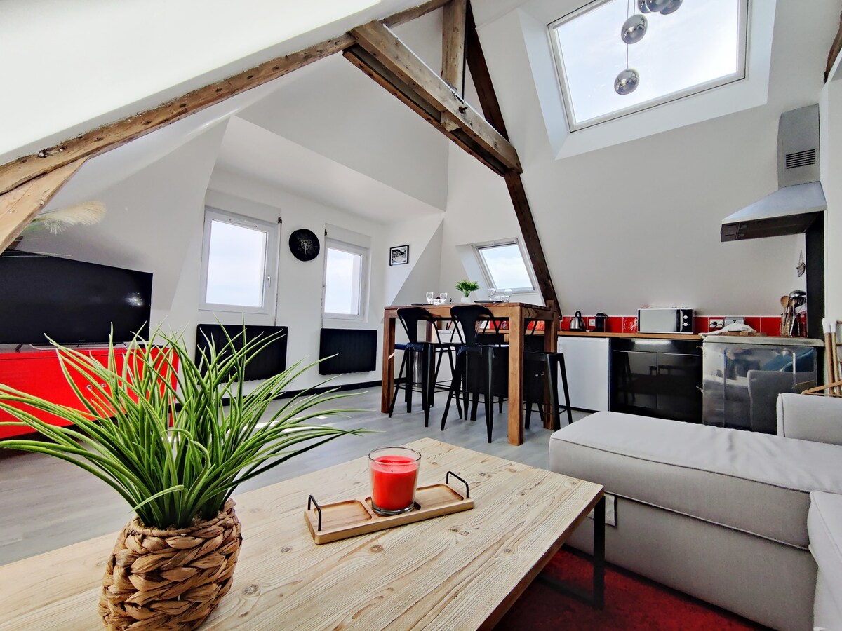 Čudovito stanovanje v višini 35 m ², 2 sobi, proti jugu, zasebna terasa, vse na 200 m od plaže, tik ob koncu ulice! Pridite in odkrijte to majhno kokon v osrčju plaž D-Day in Calvados. V osrčju zgodovinskega mesta Bernières ste blizu vsega, medtem ko uživate v popolnem miru. Apartma lahko sprejme 4 osebe: idealno za bivanje za 2 osebi v ljubezni ali družinsko potovanje. Plašč/brisača/posteljnina za gospodinjstvo, ki ni vključena, na zahtevo v dodatku.