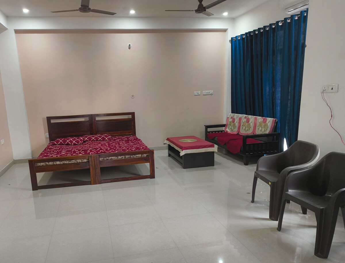 Independent Studio Hall with Open kitchen and basic amenities. we have a double bed and we can add two single temporary beds for 2 additional guests(maximum 4 guests) Comes with high speed internet,Smart TV, Refrigerator, Airconditioner,Paid Laundry Service. Offering great connectivity to nearby places. Close to market place and Great Mughlai Cuisines nearby. We have a double bed and a Sofa Cum Bed. Can additionally provide a bed on chargeable basis.