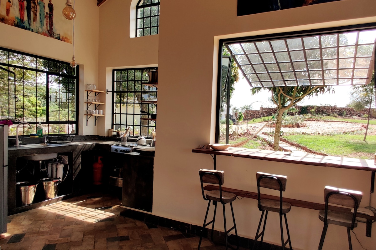 Naš dom je popoln družinski oddih. Nahaja se v čudoviti vasi Bujagali - 12 min vožnje z avtomobilom do mesta Jinja in 10 min hoje do Nila (čudoviti sončni zahodi!, SUP, kajakaštvo, križarjenja z ladjami, restavracije, Quad kolesarjenje…). Hiša ima popolnoma opremljeno kuhinjo, udobno dnevno sobo, tropsko kopalnico s padavinsko prho, glavno spalnico, otroško sobo in pisarno. Barvit vrt ima ognjišče, bazen in igrišče. Veranda ima udobne gugalnike, veliko jedilno mizo in kavč.