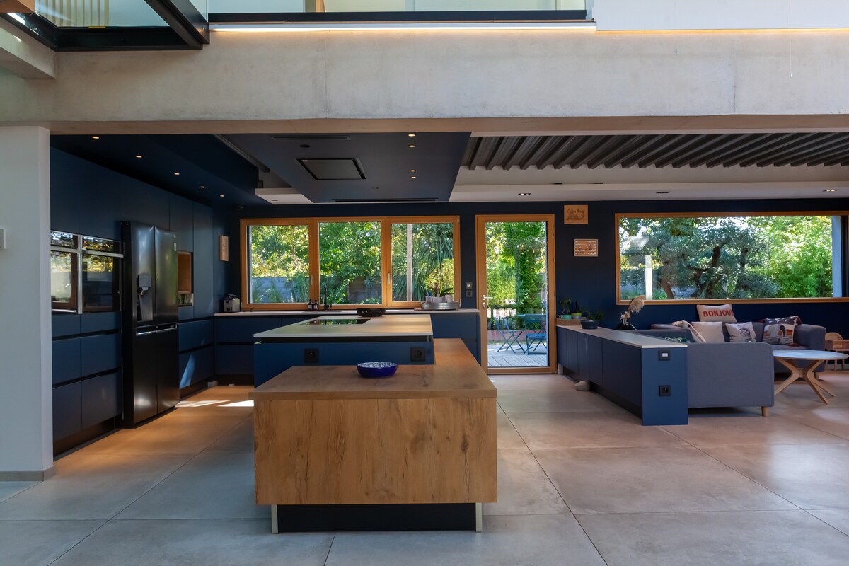 Uživajte v tej veliki atipični hiši z družino, ki ponuja dobre trenutke v perspektivi, z bazenom in vrtom. 15 minut od jezera Sanguinet, 30 minut od oceana Biscarosse in 45 minut od Bordeauxa ter 1,5 ure od Baskije. ps: na voljo sta zložljiva otroška posteljica in otroški stol za hranjenje