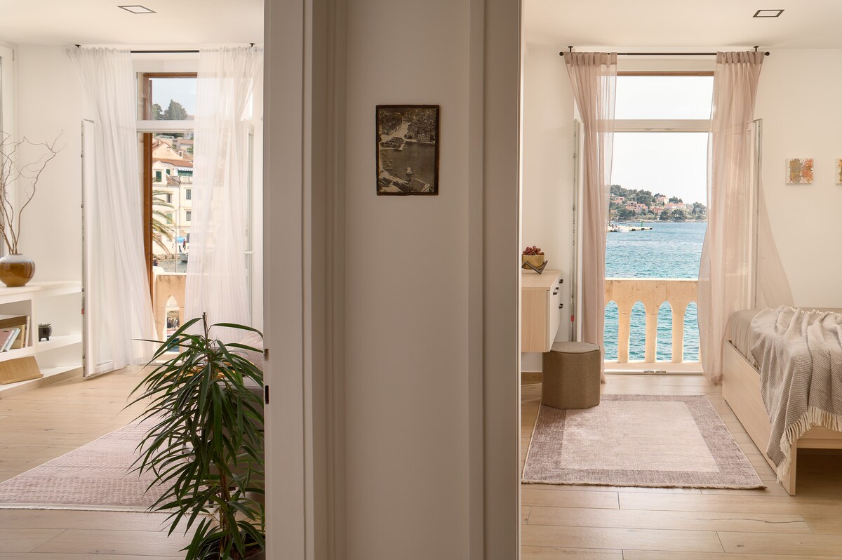 Completely renovated in 2024, mama Marija apartment ensures privacy, utmost relaxation and enjoyment at Hvar town waterfront. Original stone walls of the exterior beautifully complement timeless interior design. Wonderfully spacious and inviting, the apartment includes two balconies which overlook the marina and the old town, two beautifully designed bedrooms, two full bathrooms and a common area which combines a smartly designed kitchen and a living room, perfectly suited for get-togethers.