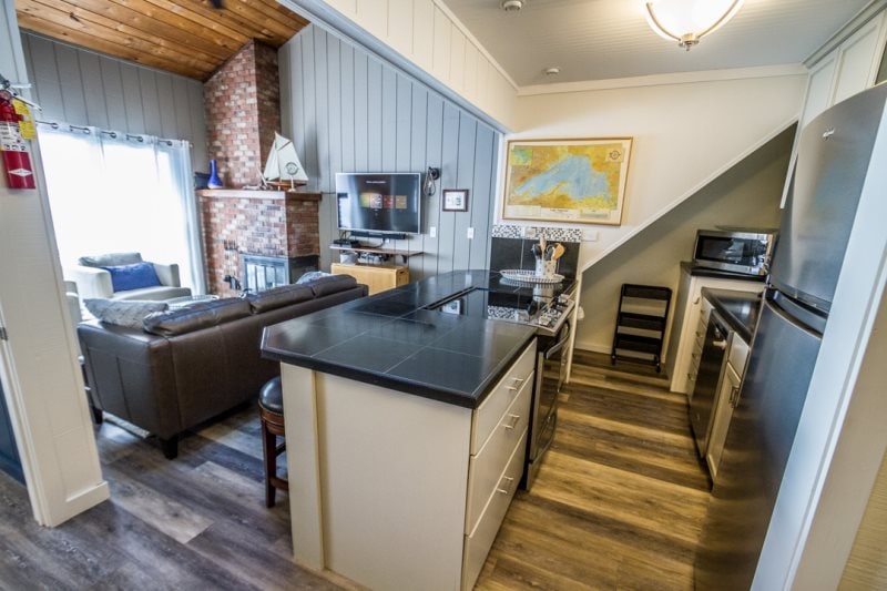 Popolnoma prenovljeno enosobno stanovanje v Chateau LeVeaux s čudovitim razgledom na jezero Superior! Ta lokacija tik ob vodi je nepremagljiva, saj omogoča enostaven dostop do vseh dejavnosti na prostem, ki si jih želite. Po dnevu aktivnosti na prostem se vrnite v sodobno stanovanje v klasični stavbi z izjemno udobno zakonsko posteljo in veliko prostora za shranjevanje pod posteljo, kjer lahko shranite svojo opremo. Velik kavč je najbolj primeren za eno odraslo osebo ali dva otroka.