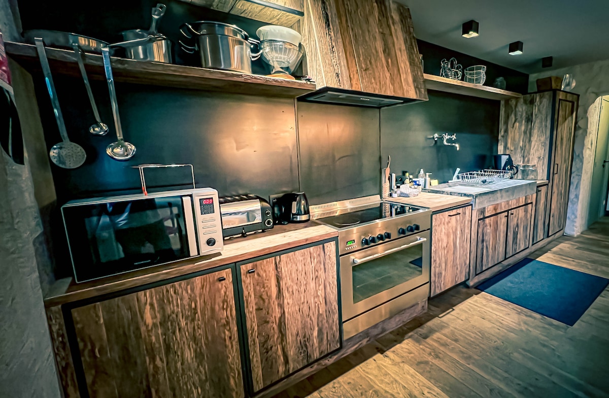 een bijzonder romantisch, licht, ruim en blij appartement met een grote open keuken en zithoek met daarnaast een sprookjesachtige badkamer, die verbonden is met een behaaglijke slaapkamer met zicht op de heuvels, een originele lambrisering en vloeren van gebrande bamboe de meubels en kunst zijn originele stukken met hun eigen verhaal ideaal als je rust, ontspanning en activiteiten in de natuur zoekt carmine en lore