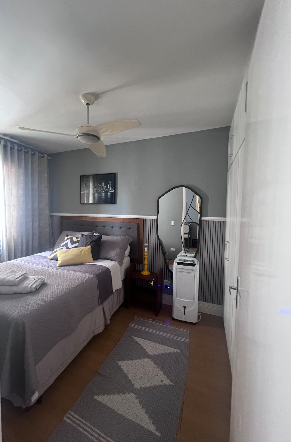 Hospede-se neste funcional apartamento de 30 m² no centro de São Paulo! Com uma cama de casal, uma de solteiro e ar-condicionado, acomoda famílias ou pequenos grupos com conforto. A escolha perfeita para descansar ou aproveitar tudo o que a cidade oferece! 300 m da Rua 25 de Março 600 m do Bolsão de Compras 700 m do Mercado Municipal 450 m da Pinacoteca 1 km da Feirinha da Madrugada no Brás 5 km do Expo Center Norte ✔️ Prédio moderno com portaria 24 h e Wi-Fi rápido