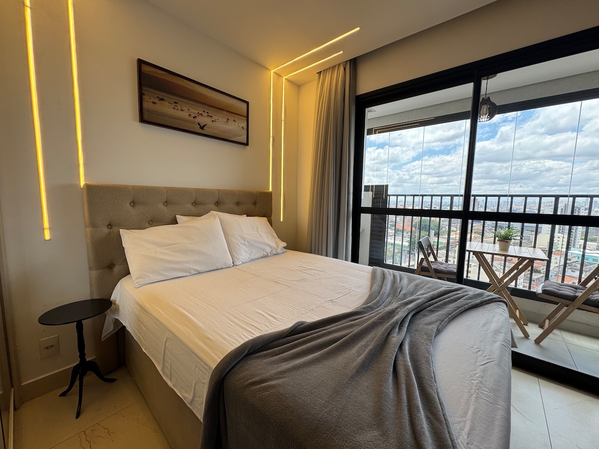 Elegantno doživetje v tem dobro lociranem bivališču in ponuja elegantno doživetje. Lindo e novinho apto v zgodovinskem središču São Paula. Izkoristite lokacijo za nakupovanje, obiščite 25. marec, Mercadão (občinsko tržnico) in vse, kar vam lahko Center ponudi. Pripravljeni smo na udobno in udobno sprejemanje dveh oseb. Lahko si pripravite obroke, počivate ob gledanju filma in celo uživate/vidite noč in luči São Paula skozi balkon.