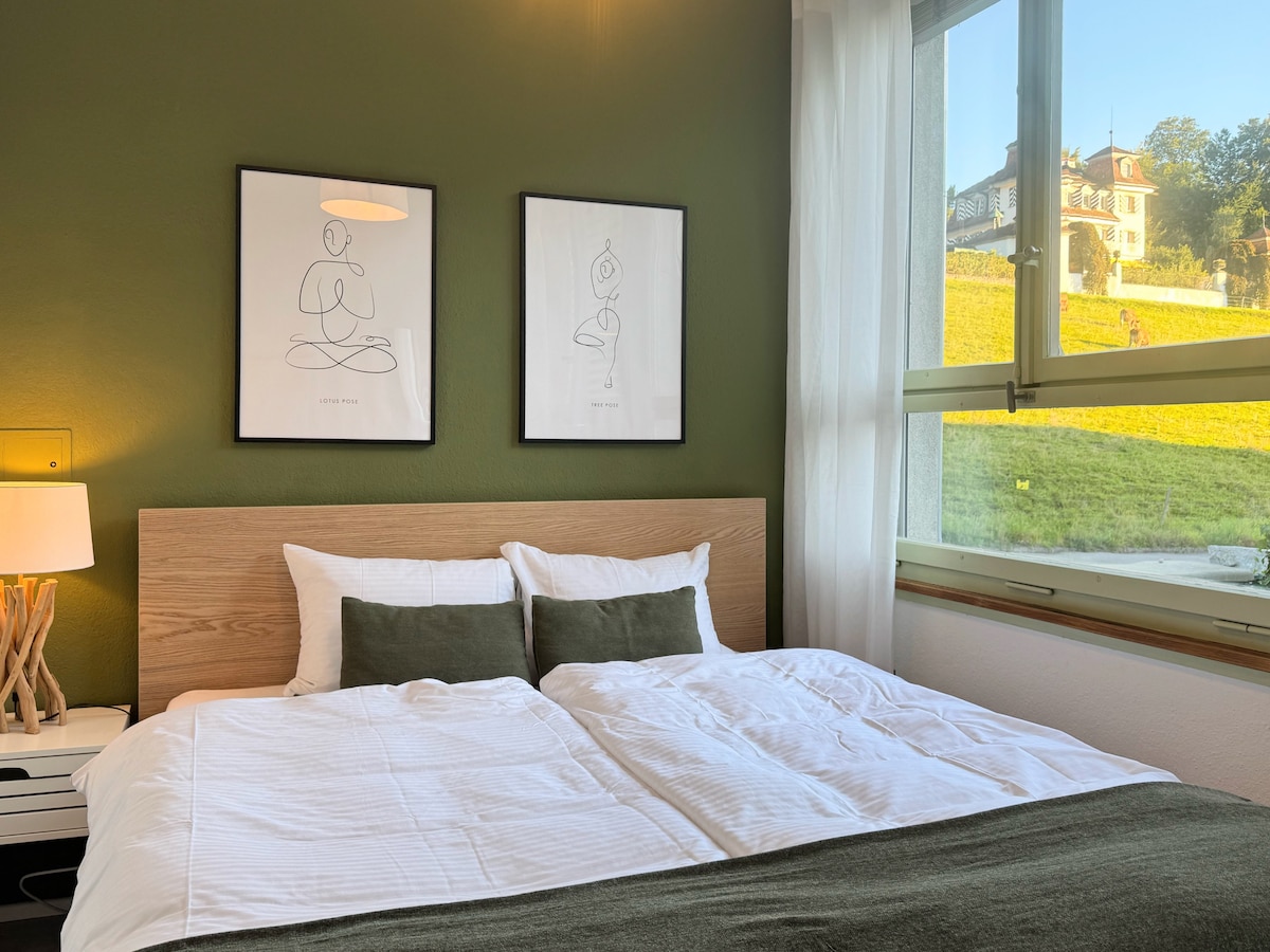 Prostorno stanovanje v dvodružinski hiši na robu naselja in v bližini gozda. Stanovanje ima visokokakovostno pohištvo, celotno notranjost in vrt, delno Skupna uporaba. Primerno za tiste, ki iščejo mir in tišino. Popolno izhodišče za sprehode po podeželju. Brezplačno parkiranje pred hišo. Dobra povezava z avtobusnim omrežjem (5 minut hoje). Privlačno turistično mesto Luzern v bližini (avto: 15 minut/javni prevoz: 30 minut. Idealno za 2 osebi, tretja postelja je na voljo.