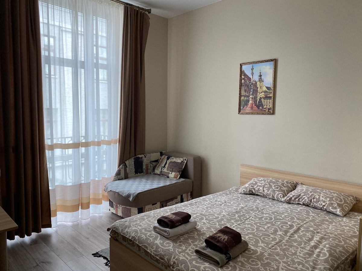 Naši apartmaji so izjemno atmosferski in elegantni ter imajo odlično lokacijo - v zgodovinskem središču Lviva, ki je naveden v Unescovi svetovni dediščini! 2 minuti - in ste na tržnem trgu! Soba gleda na mesto. Ulica Staroyevrei je polna kavarn, restavracij in trgovin s spominki. Obiščite nas in sprejmite posebno vzdušje Lviva, saj popotniki z vsega sveta obiskujejo veličastne katedrale, dišeče kavarne in čarobne trgovine v Lvivu! Dobrodošli!