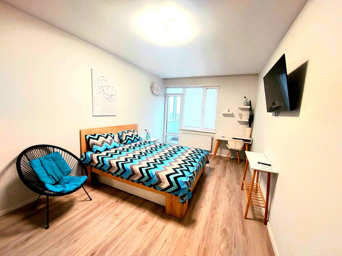♥5M to Rynok Square♥King-size bed♥Balcony+Parking