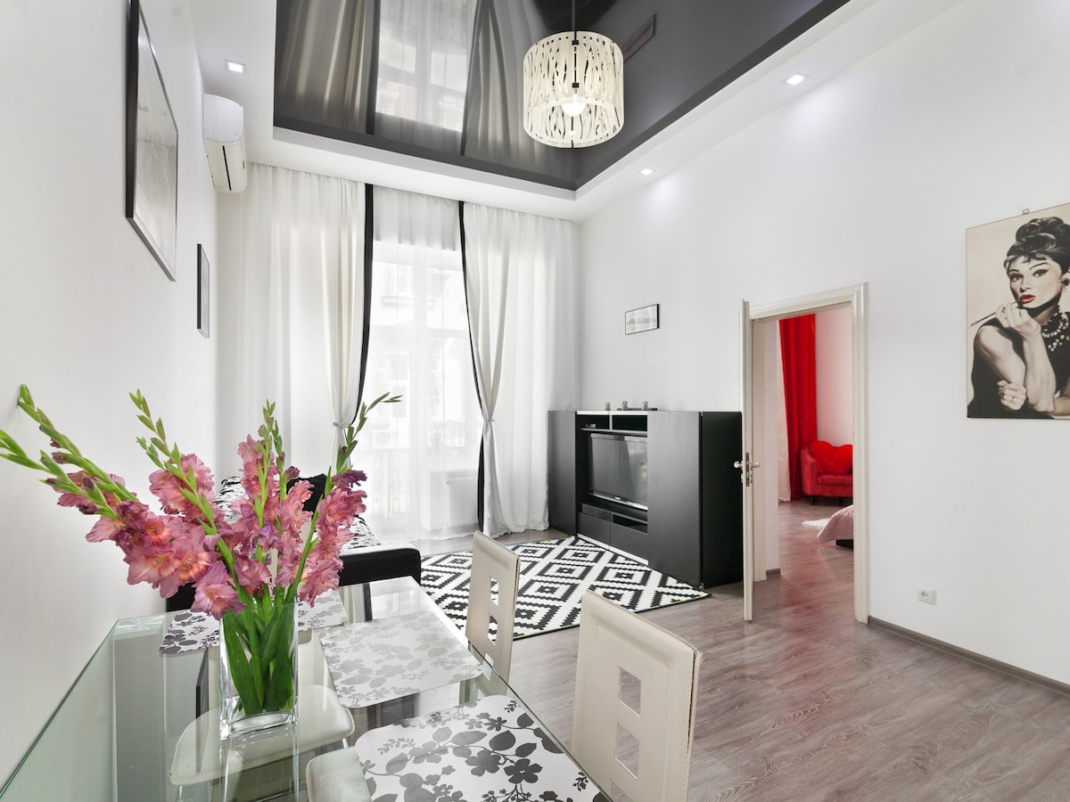 Uživajte v elegantnem vzdušju te namestitve v središču mesta. Sodobno enosobno stanovanje s kuhinjo in dnevno sobo ter izolirano spalnico, ki se nahaja v zgodovinskem središču Lavova. Nova prenova, opremljena in opremljena z napravami: mikrovalovna pečica, grelnik vode, pomivalni stroj, sušilnik za lase, klimatska naprava. V bližini so zgodovinske znamenitosti, muzeji, gledališča, trgovine, restavracije in javno parkirišče. Elegantno vzdušje te namestitve je v osrčju mesta.