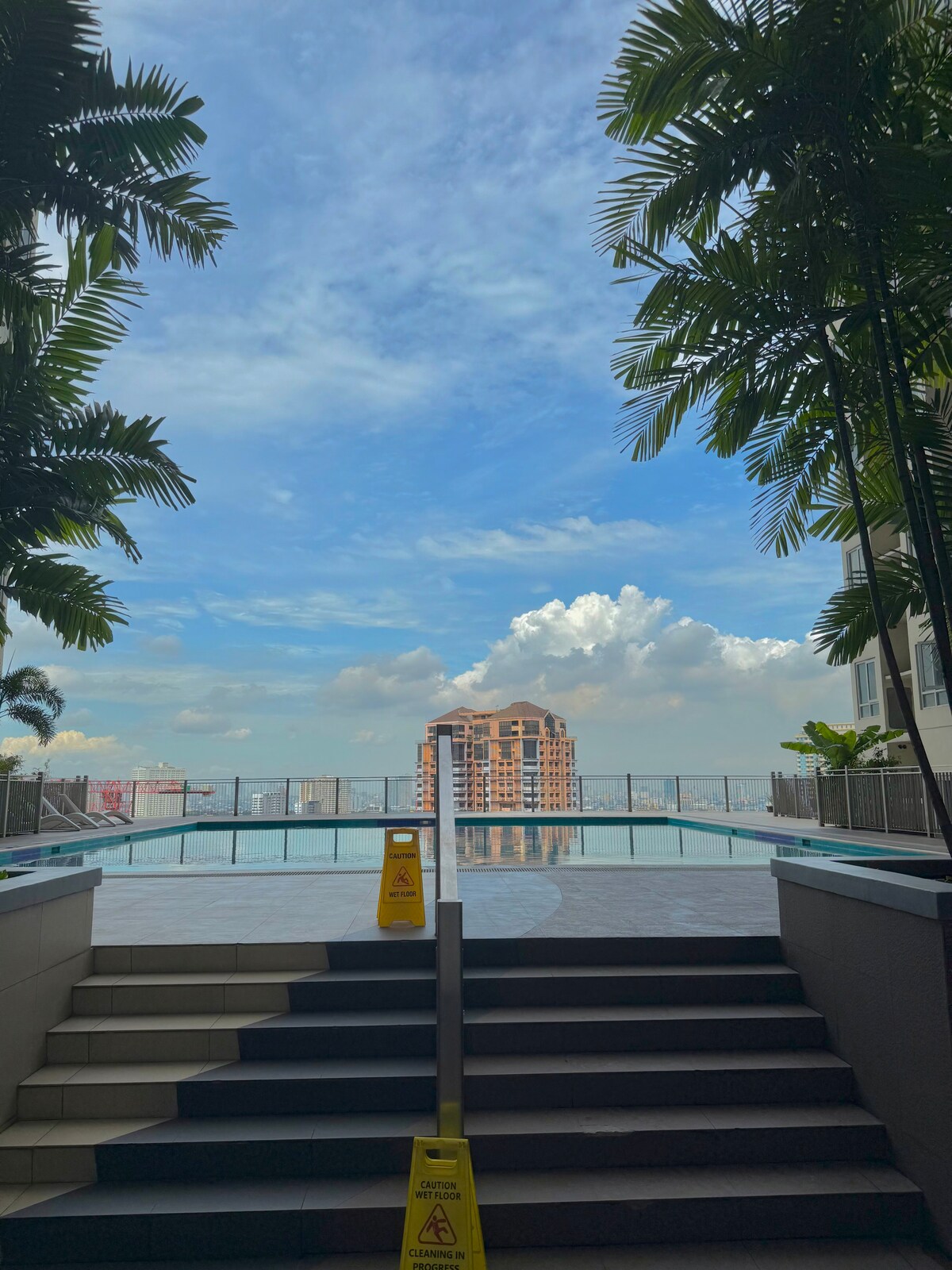 Unwind in this cozy, well-equipped home designed staycation for comfort and convenience. Stay cool with air conditioning, enjoy full kitchen, and stream your favorites on TV with Netflix, YouTube, and more. With up to 50 Mbps Wi-Fi, it’s perfect for work or leisure. Refresh with reliable water heater, a bidet, and provided body wash. Have fun with indoor board games and retro games, relax at the pool for a small fee. Mall with parking is available at the ground and close to bars and restaurants.
