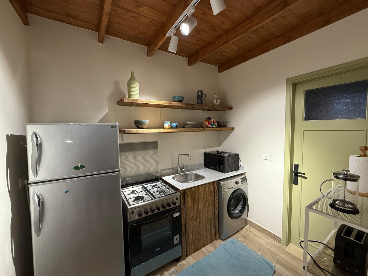 Eleganten, na novo prenovljen studio v Sarayat Maadi, kot nalašč za solo popotnike, pare ali poslovna potovanja. Vključuje udobno zakonsko posteljo, pametni televizor, Wi-Fi, popolnoma opremljeno kuhinjo in kopalnico. Uživajte v pogledu na vrt ali pa se sprostite na zasebni strehi. Nahaja se na cesti 11, le kratek sprehod do metroja, ceste 9, trgovin in kavarn. Pekarna Ratios je tik spodaj, kjer lahko poskusite kavo ali prigrizke. Udobje in priročnost na odlični lokaciji v okrožju Maadi.