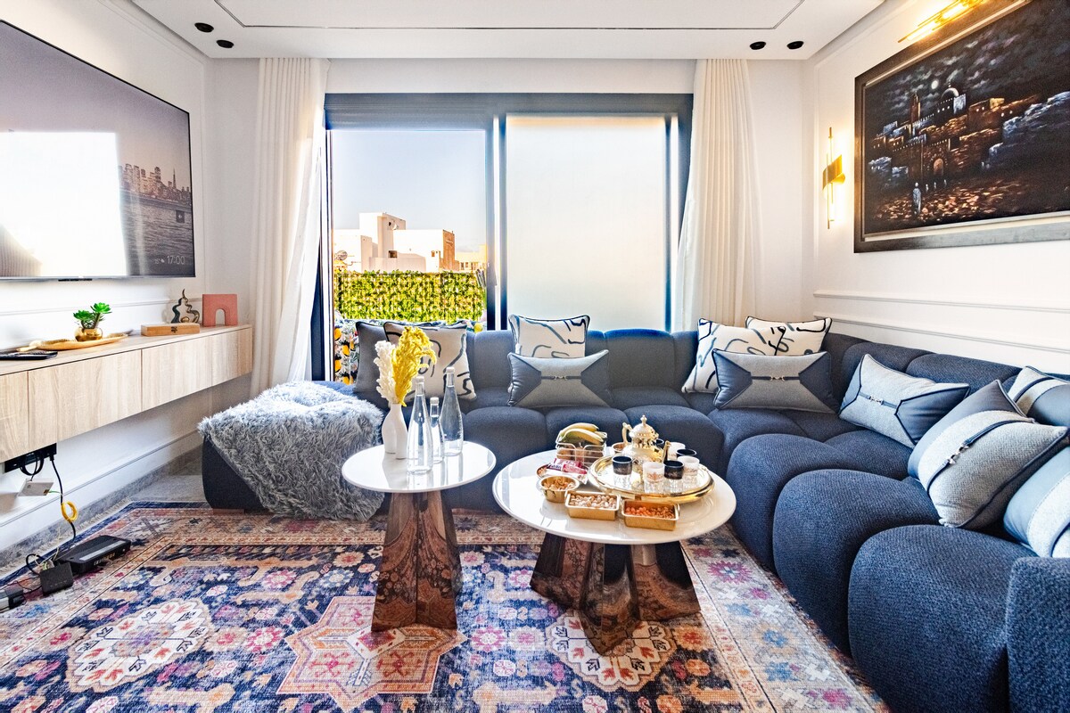 Perla 403💎, zatočišče miru, kjer se eleganca sodobne rezidence združuje z udobjem 5* hotelov v osrčju Casablance! Sprostite se v prostorni dnevni sobi s sodobnim dizajnom, opremljeni s 55-palčnim pametnim televizorjem z Netflixom in IPTV-jem za popolne sprostitvene večere. Soba, resnično udobno gnezdo, obljublja mirne in obnovitvene noči ☁️ Z zasebnega balkona opazujte čudovite sončne zahode mesta, da bo vsak trenutek vašega bivanja nepozaben! ✨