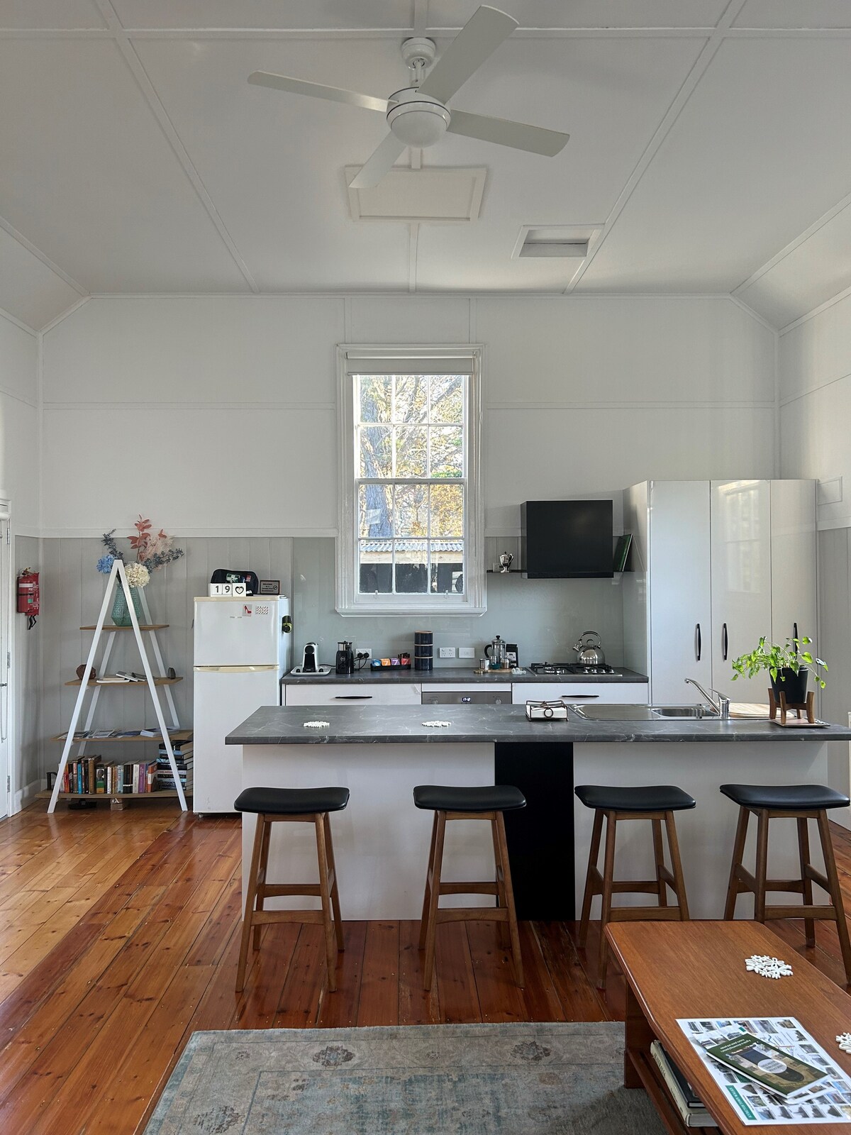 Šolska hiša je bila zgrajena v Lauristonu leta 1860 in je bila kasneje prepeljana v središče Kynetona. Spoštovanje prvotnega značaja in šarma je bilo čudovito obnovljeno in je obdano z lastnim zasebnim vrtom, verando, žarom in prostorom za zabavo. Šolska hiša ima zasebni vhod. Studio z eno veliko sobo, ki jo sestavljajo zakonska postelja, enojna raztegljiva postelja, bivalni prostor ter sodobna kuhinja in kopalnica. Šolska hiša ima vse, kar potrebujete za udobno in priročno bivanje.