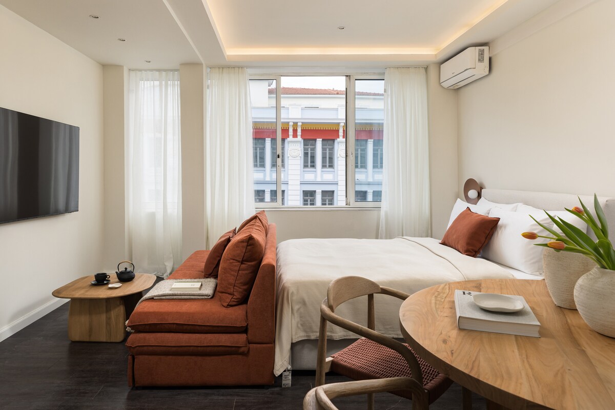 -Prime location on side street of Aristotelous Square -Few steps from the waterfront -Easy walking to all venues/sites -Modern clean design with ample natural lighting -Easy keyless access -Inverter A/C Unit for heat/cold -High quality mattress and pillows -Luxury Wet Room Design bathroom -Professionally cleaned for your stay -Perfect for a couple, lone traveller, executives, friends and family -Offers all amenities needed for a comfortable, relaxing stay in this vibrant city!