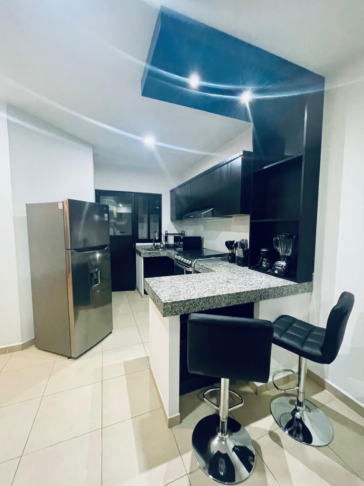 Este elegante y amplio alojamiento es ideal para viajes de descanso, negocios y paseo, diseñado para brindarte confort, disfrutando de espacios con luz natural siendo ideal para quienes buscan comodidad y estilo. La sala de estar es perfecta para relajarte y una cocina totalmente equipada para preparar tus platillos favoritos. Las habitaciones son ideales para un descanso reparador. Tenemos una privilegiada ubicación cerca de plazas comerciales, aeropuerto, farmacias, bancos y mas servicios.